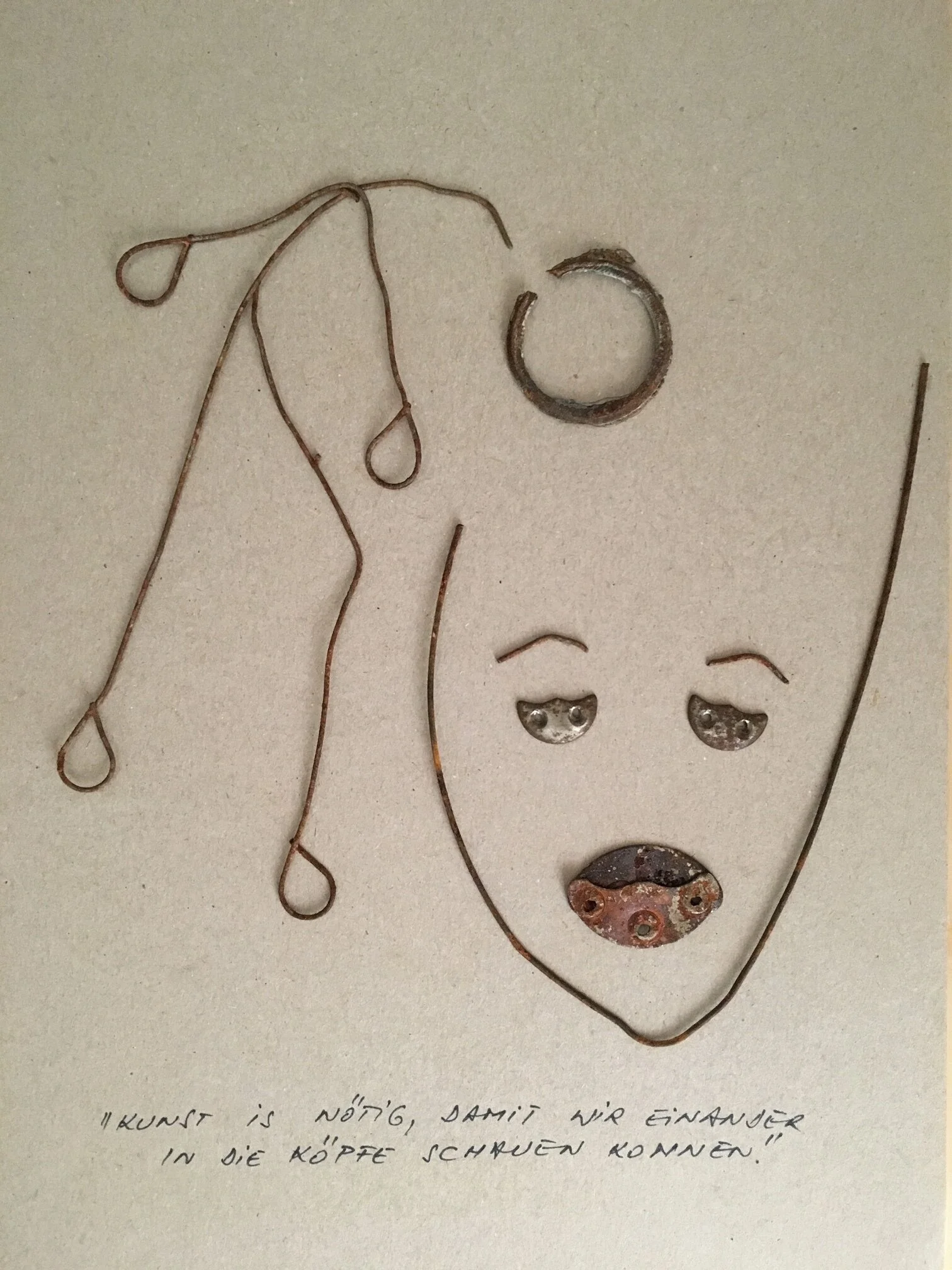 Everything seems to happen faster on the planet nowadays. Even if we do not like it, we are often on the run, with no time to smell the roses. Like an espresso, a quote can wake us up instantly, open our mind and heart and give us a pause for a while. My figures are often reduced to the minimum - scarce, archetypal, essential. They contain their own code, language and dialog. In mini format they bring a smile, a piece of wisdom, a fresh perspective or even a new life philosophy. The viewer gets a short break inside my fantasy world. I describe my "Trash Treasures" as "art-to-go".